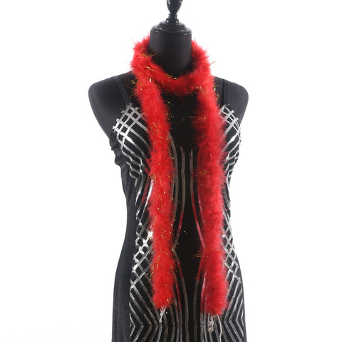 ขายส่งราคาถูกสีแดง Marabou ขนนก Boas W/ ทองดิ้นสำหรับ DIY อุปกรณ์ผม2หลา